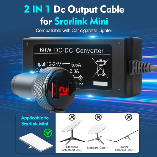 Starlink Mini Adaptador 2 en 1 DC 12V 24V 100W Max USB-C