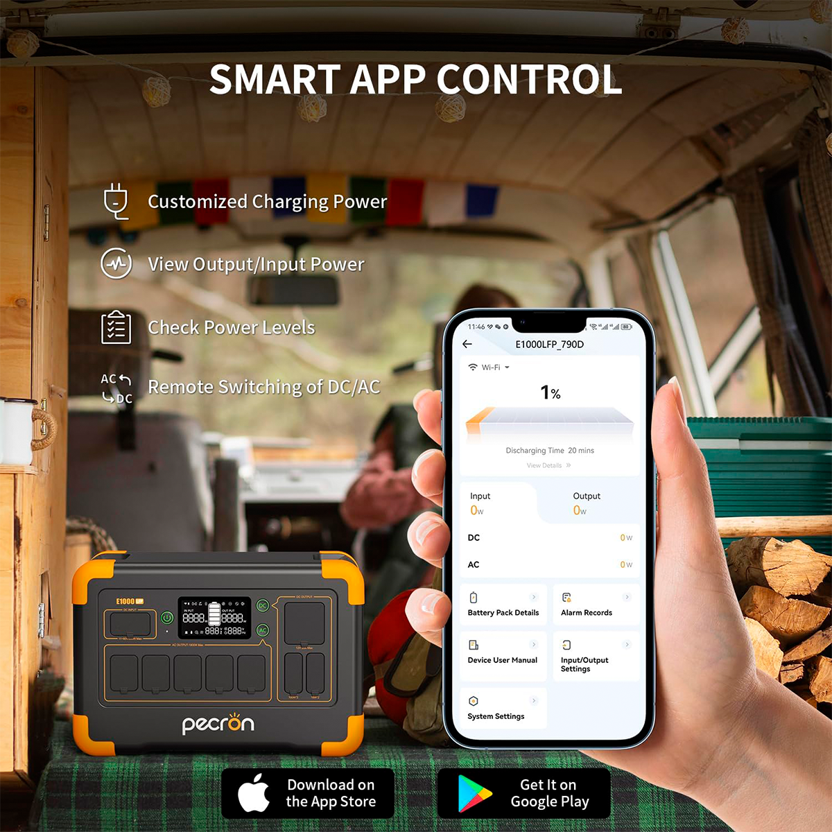 Estación De Energía Portátil Pecron E1000LFP 1024Wh 1800W